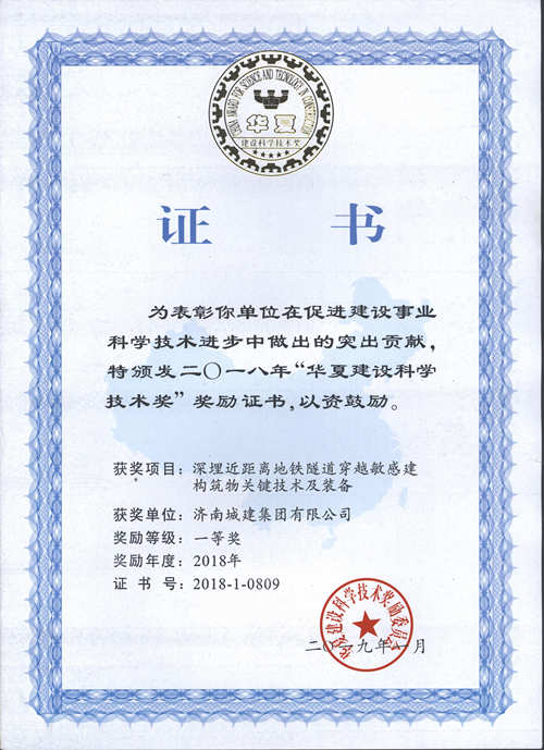 集团《深埋近距离地铁隧道穿越敏感建构物要害手艺及装备》荣获中原建设科学手艺奖一等奖